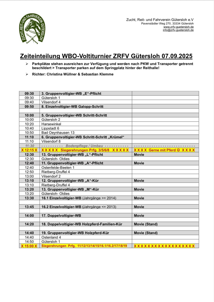 Am 07.09.2025 veranstaltet der ZRFV Gütersloh e.V. nach langer Zeit wieder ein Voltigerturnier auf der Anlage am Pavenstädter Weg. Weiter Informationen folgen in Kürze.